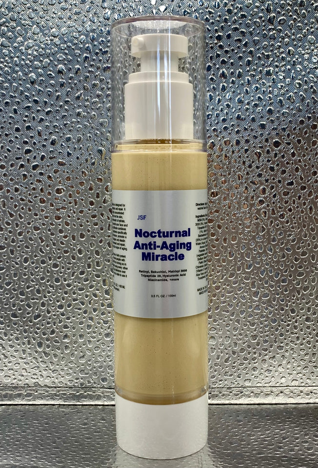 Nocturnal Anti-Aging Miracle is designed for night-time healing, rejuvenation and repair. It delivers powerful and highly concentrated active ingredients directly into the skin, penetrating deeply and intensely to hydrate, rejuvenate, revitalize and nourish your face and neck. Nocturnal Anti-Aging miracle combines clinically proven active ingredients specifically formulated to improve skin texture, promote a healthy glow, enhance collagen and elastin production, activate cell renewal and repair, slowing down and reversing the signs of aging.